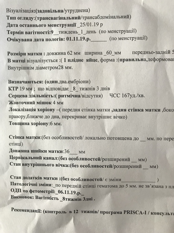 а 37,6, насморк, кашель.Была вчера на УЗИ, срок по месячных 9 недель 1 день, по УЗИ 8 недель 3 дня. КТР 19 мм, ЧСС 167, ПЯ 28 мм, ЖМ 4 мм, толщина хориона 6 мм, ШМ 36 мм. Локализация хориона-задняя стенка матки. Ручки, ножки красиво видно.На передней стенке матки гематома до 5 мм, не связаная с плодом. По анализам крови всё в норме, кроме фибриногена-он 4,3 (норма 2-4), АЧТВ -29,9 ( норма 30-40) и ферритин 34,6 (норма 5-148), по этим вопросам в понедельник иду к гемостазиологу. Скажите, пожалуйста, всё ли нормально по УЗИ? Не большое ли отставание в развитии? Фото УЗИ добавляю.