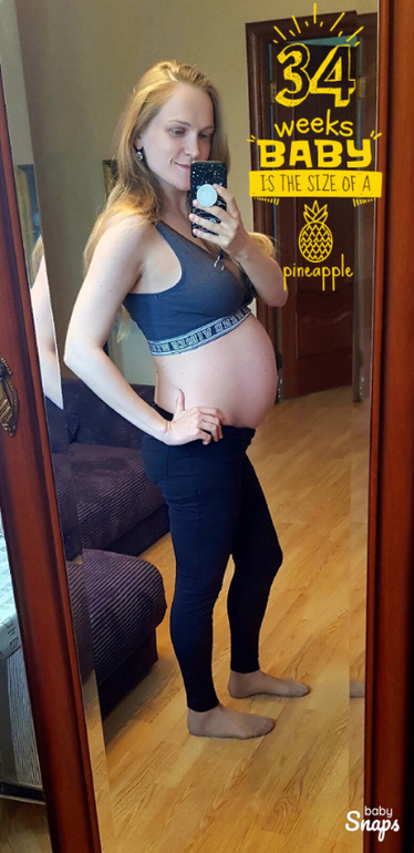 Из ощущений- живот стал явно тяжелее, продалжаются треники, на которых я как раз практикую дыхание. Малыш активный, сильный, когда сильно бунтует начинает колоть в мочевом пузыре или канале, не понятно.