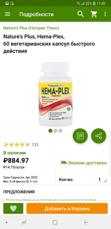 Я пила сначала Сорбифер для ферритина, мне не зашёл - болел желудок, не могла дождаться, пока придёт с айхерба идеальное железо. Идеальное железо было супер. Потом оно закончилось, пришло солгаровское мягкое железо и что-то оно мне опять не супер как заходит, есть лёгкая изжога. Пью натощак утром, поэтому особенно чувствуется. В целом за два месяца подняла ферритин с 22 до 46, пила по 100 мг, последние дней 10 только по 50 мг стала пить из-за изжоги. Жду, когда снова идеальное железо придёт. С гемоглобином оно связано не напрямую, потому что у меня свой гемоглобин очень высокий. Сдавала буквально в четверг анализы - уже даже зашкаливает, но я на спорте и в целом воды мало пью. Поэтому пока поднимаю ферритин и стараюсь пить воды много, через месяц ещё посмотрю. Витамин Д подняла до 50, чувствую себя кайфово. Может, ещё от железа, но знаю, что витамин Д входит в схемы для кожи, груди, волос и почти во все остальные)) Поэтому результаты, как говорится, на лицо)