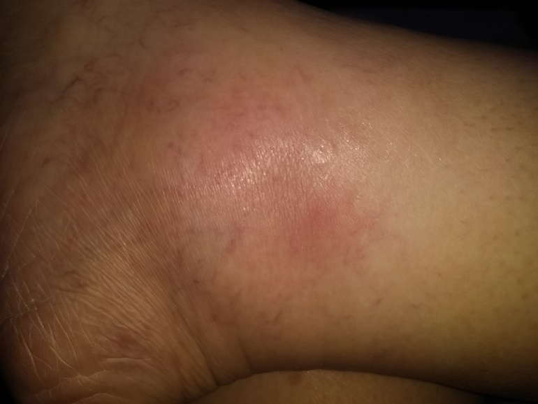 Растяжки, варикоз, родинки, волосы, ногти, кожа, бессонница, ВЕСУ меня такая беда- уже неделю не проходит нога- хожу с бинтом эластичным, мажу траксевазин- не понимаю что это...отекает щиколотка к вечеру и болит иногда...месяц назад было что-то подобное, но столько капилляров не было видно и прошло через неделю...никогда варикозом не страдала, ударить вроде не могла...вот думаю может что-то укусило меня...5.08 иду на прием к гине- уточнюсь у нее- к какому врачу пойти если что...Девочки, может у кого было подобное как на фото???