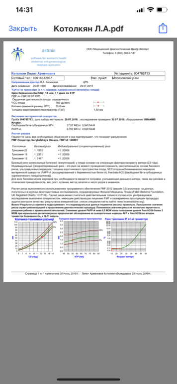 braunamelia32 в Здоровье будущей мамы 6 лет Девочки помогите разобраться Анализы, инфекции Все ли тут хорошо? Вообще ничего не понимаю Посмотрите еще 20 записей на эту тему Отменить Ответить Анна Все отлично 04.08.2019 Ответить braunamelia32 Потологий нет? 04.08.2019 Ответить Анна О паталогиях вам бы сказали на узи. Риски хромосомных аномалий очень низкие 04.08.2019 Ответить braunamelia32 Спасибо Вам большое...а хгч по как разобрать? 04.08.2019 Ответить Анна Вам не нужно его разбирать) он учтен при расчете рисков, а сам по себе ничего не значит 04.08.2019 Ответить Пульс 120 в 3 триместре и слабость в мышцах Анализ крови Чаты Беременных Выберите чат: Январята-2026 Февралята-2026 Мартята-2026 Апрелята-2026 Майчата-2026 Июнята-2026 Июлята-2026 Августята-2026