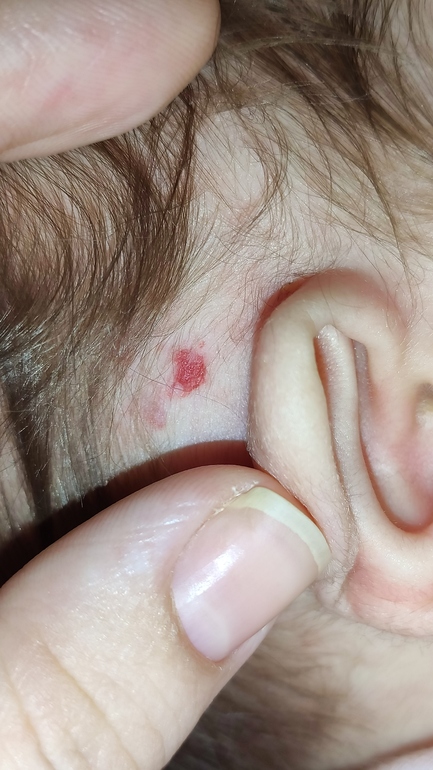 НоворожденныйДочке 2 месяца. Когда родилась, у нее было небольшое красное пятнышко за ухом. Я не обращала внимания, думала тоже гемангиома, как на глазике, детский врач по поводу глазика сказала не париться, оно само пройдет, делать ничего не нужно. Сейчас увидела что это пятно за ухом стало будто краснее и сильнее заметно. Ничего не вытекает оттуда, не пахнет, при надавливании ребенок не беспокоится, оно вроде не выпуклое. Скоро прием у врача, конечно же спрошу что это. А пока хотела спросить тут, может у кого было подобное, что это оказалось?