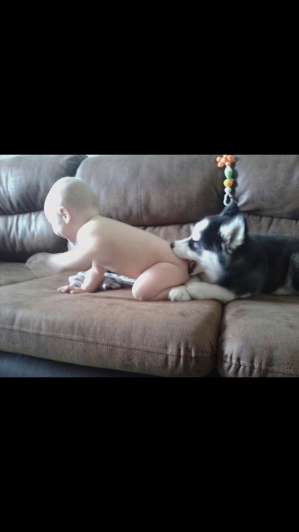 мои парни не разлей вода ( собакену 1 год). Песя сейчас постоянно нюхает мой живот, головой крутит когда пузо шевелиться и лижет его. Видать чувствует, что там лялька