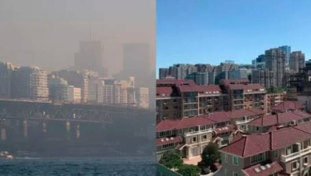 И не известно когда все это закончится, дождей нет. Спасет только ветер с океана тогда смог сдувает обратно вглубь континента.
