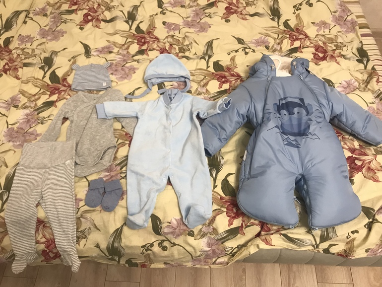 Специально на выписку ничего не брала. В комбезе заберём, в нем же и гулять будем.