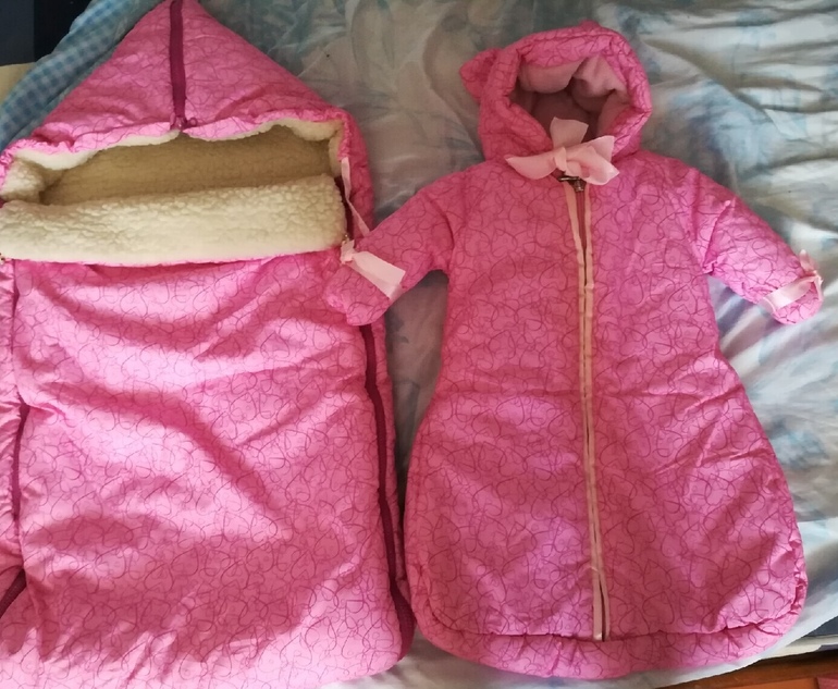 Мы купили хб слип, комбинезон с альполюксом велюровый, шапочку такую же и шарфик, а сверху одеяло на молниях, оно как конверт застегивается с тем же утеплителем.