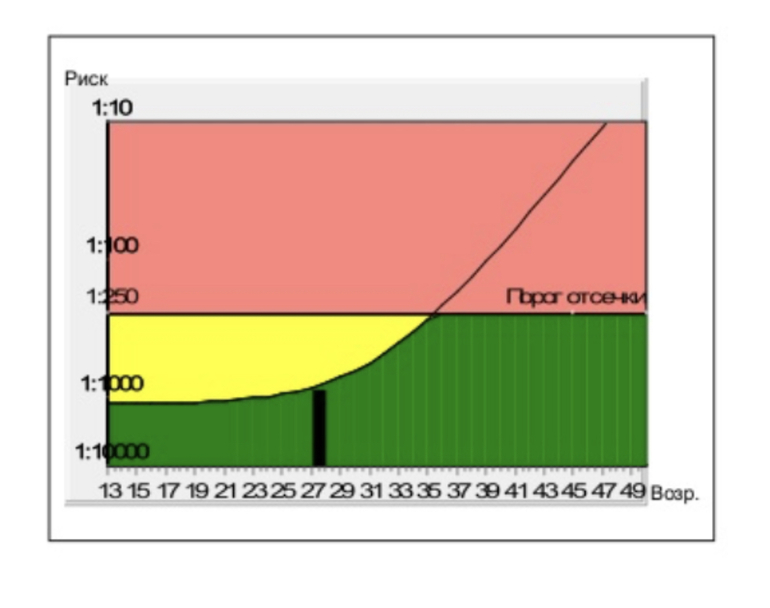 Кстати, как это у Вас возрастной 1:639??? Вот это я думаю точно ошибка, либо по другой системе считали) у меня в бумажке возрастной риск называется «базовый») просто встречала где по другой программе рассчитывают, там такие разноцветные диаграммы, у меня результаты в другом виде)