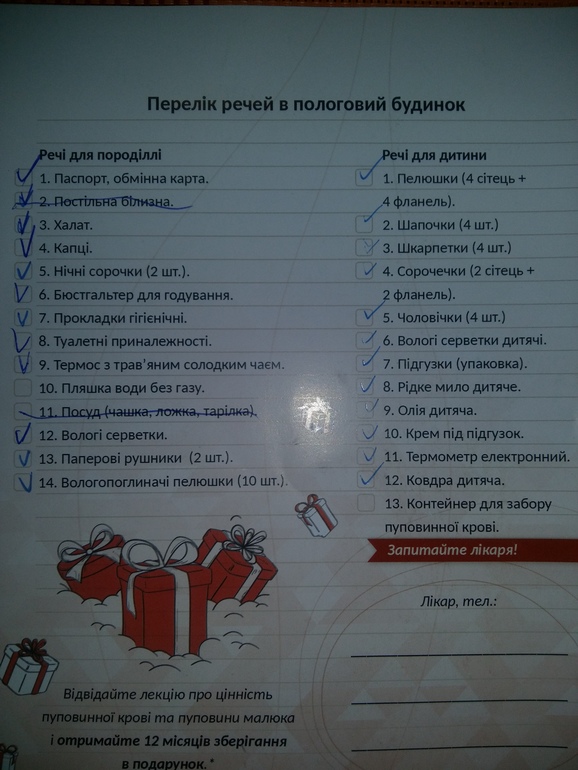 Список свой уже проработала учитывая свой прошлый опыт, личные нужды и эти списочки (если интересно в дневнике есть). А так делюсь тем что предоставили в роддоме.