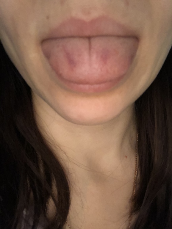 Здравствуйте! Скажите, у кого-нибудь появлялись похожие полоски? О чем это говорит? В нете не могу найти инфу. Принимаю железо и б12 по предписанию врача. Это не окрашенный язык))))
