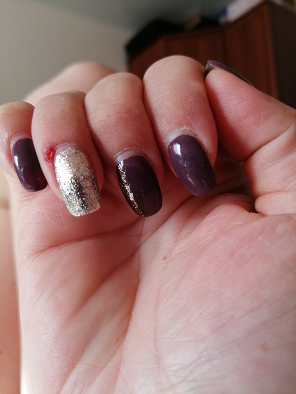 ДругоеДевочки, месяц где то назад возле ногтя на безымянном пальце появился типо кровоподтека синячок. Я на него и внимание не обращала, он был малюсенький,если бы на ногтях мне маникюрша не сказала, что я видимо где то палец ударила...