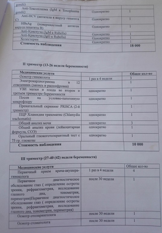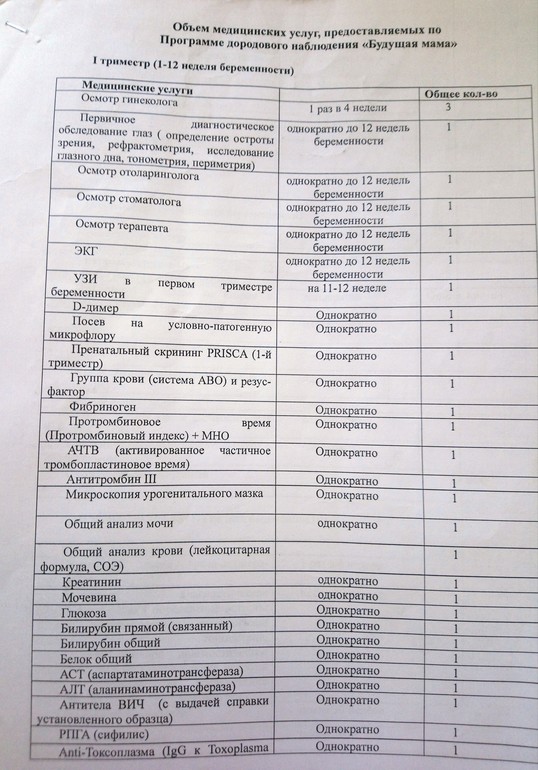 Вот мой плановый перечень исследований по триместра, а дальше зависит от результатов, бывает что-то добавляют...