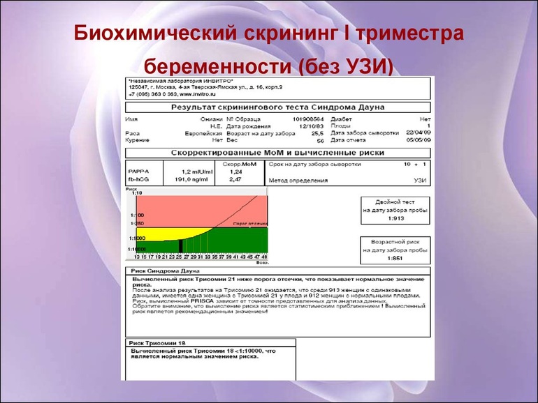 Это только биохимия крови. Кто будет вам считать риски по данным крови и узи я не знаю, мне это делал врач, который делал узи.