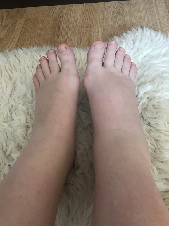 Растяжки, варикоз, родинки, волосы, ногти, кожа, бессонница, ВЕСНе могу что-то в последние дни сдаю, плаксивая, раздражённая, нервная....Начались очень сильные отеки ног (особенно правая, там более выражен варикоз). Руки вроде нормально (раз кольца снимаю-одеваю). Фото ног прикрепила. Что делать девочки, я в панике! Иногда даже сгибать ногу в голеностопе некомфортно. Мазь троксевазин не помогает. У меня правая нога всегда отекает летом или на море, но блин не так, косточки хотя бы видно. Ходила неделе на 22 к флебологу (тогда все было в норме, но на всякий случай сделала узи, он подтвердил варикоз). Как облегчить это все. Мне прям страшно на ноги смотреть. Компрессионные чулки покупать есть ли смысл, у меня отеки с утра держаться уже. Давление в норме (единоразово у врача после осмотра на кресле поднялось 130/80, так держится около 120-125/60). Мочу сдам завтра, но обычно она хорошая.