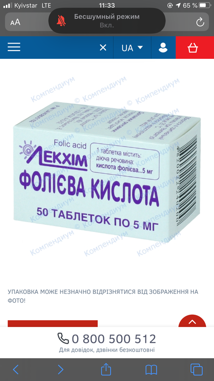 Такую точно же пила по 1 таб в день, но витаминов больше не пила где присутствует фолька. Потом начала пить элэвит, фольку бросила.