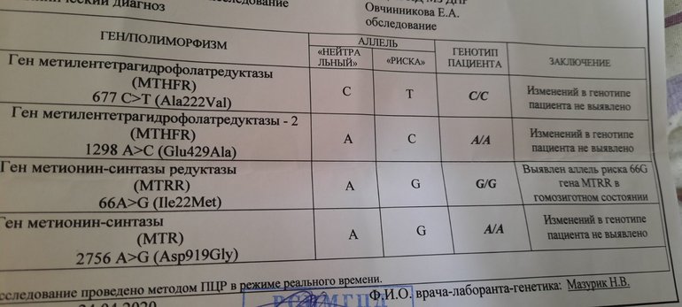9 . После не обследовалась так как решила что беременеть не буду больше. Но получилось что заб. Сейчас 10 Нед по мес. Врач отправила на конс. К генетику. Сдала на тромбофилию и фолат. Генетику ничего толком не сказала типа все норм но пей фолиевую 2 мг. В день. Но приехав домой я полезла в Гугл и начиталась что не все так нормально. Посмотрите пожалуйста результаты может у кого то похожие. Что вам ваш генетик рекомендовал. Извините за фото лучше не получается