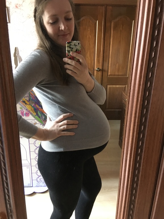 К роддому вроде все купила, осталось сумки прозрачные купить и все сложить. Вещички еще не стирала, кроватку не собирали.Мне стало все лень((Честно, уже рассклеиваюсь(Малыш стал прям иногда больно пинать, видать вытягивается еще в полный рост, иногда прям поперек ложится, ночью вместе спим)) Уже одышка появилась, кости все болят, живот иногда, кажется, лопнет😆У вас прям кругленький, большой такой животик. Во вторник пойду декрет оформлять, ну и куча анализов...