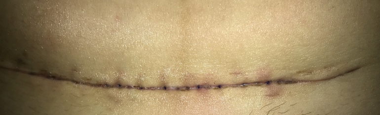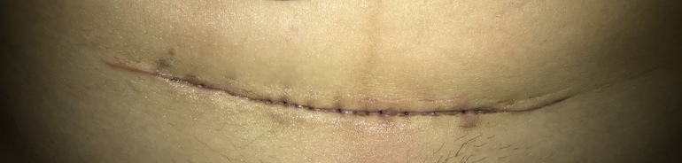 От ниток были дырки, но к концу первого месяца у меня уже всё зажило. Я бы показалась уже хирургу