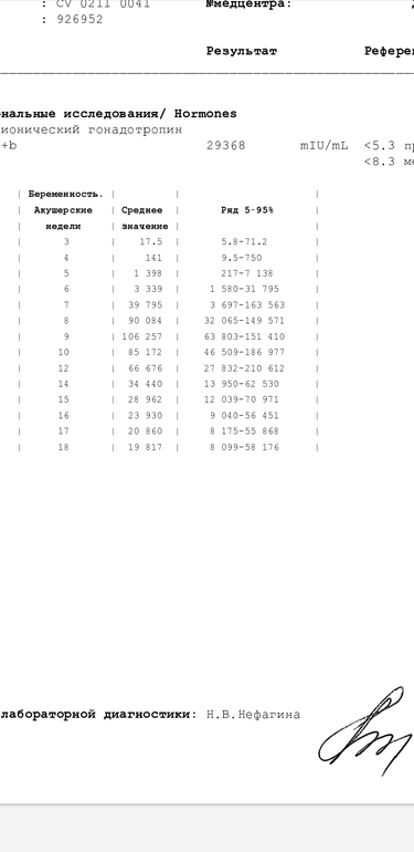 По нормам лаборатории мои результвты соответствуют 6-7 неделям😱