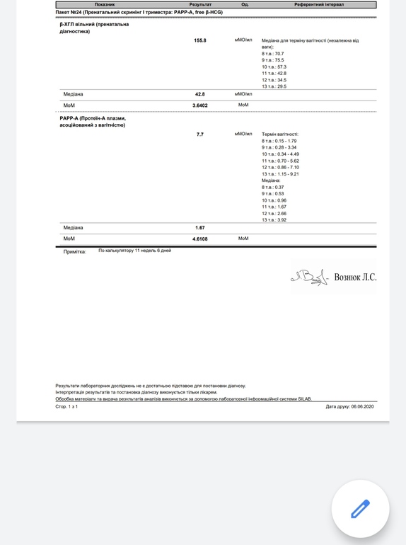 Я уже тоже это поняла, тем более на утрожестане ,а этого никто не учел. Генетик из Запорожья посоветовала второй делать в диа сервисе,вот там и сдам...а то переколотили и меня,и ребенка с такими анализами!!)