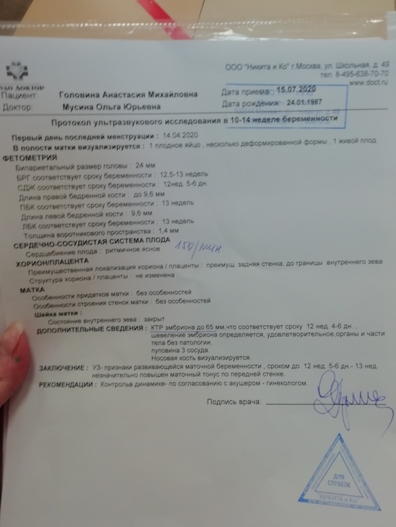 Результаты: УЗИ, КТГ, доплера, скринингаПривет всем. Вернулась с узи, кровушка будет готова через неделю. По узи все замерла, кроме размера носовой кости, сказала, что на 11 нед и 6 дней определить не удаётся размеры 😒
