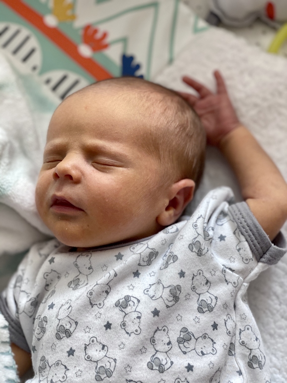 Улыбается часто и так красиво:) Часто икает, иногда чихает.. Пока весь в прыщиках из-за моих гормонов и в желтушке. Еще у него облезает кожица и пока не подстрижены ноготочки. И он прекрасен абсолютно!😚