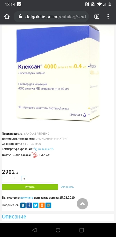 Извините, конечно, но что Вам это даст? Ну, найдете Вы клексан на 10-14 дней. А дальше?