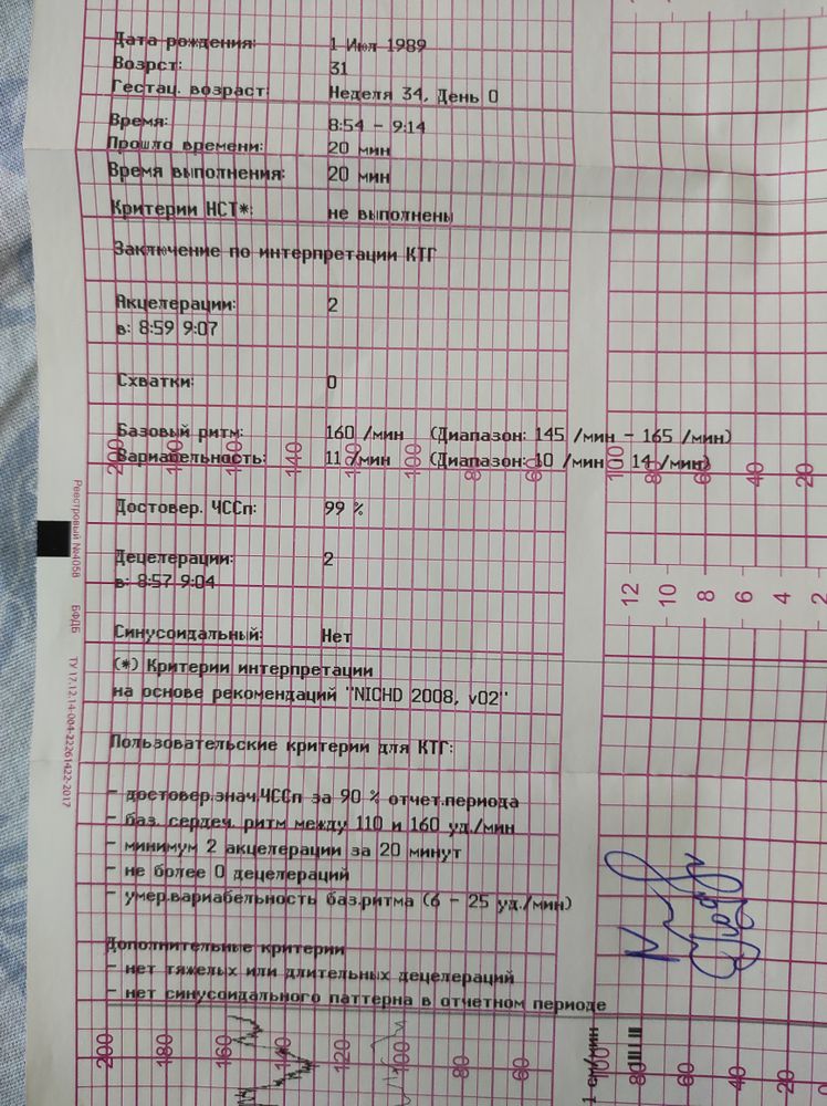 Результаты: УЗИ, КТГ, доплера, скринингаДевочки, ну вот как быть? Первое ктг делала, не понравилось, что не было акцелераций. Переделала. Дважды. Второй раз все 20 мин постоянно совпадал пульс с малышом и результат получился некорректный. Плюс показал 3 децелерации и 1 схватку! В третий раз уже 2 децелерации без схваток. Какие схватки на 34 неделе? Я в замешательстве. Гинеколог ничего толком не объясняет. Сказала только, что последнее ктг хорошее (а децелерации???)но с комментарием типа если заметите, что плод стал мало шевелится или не чувствуете его - срочно в роддом. В общем, в очередной раз настращала. Мне поставили ГСД, сахар натощак колеблется в районе 5,0-5,4. Как я понимаю (интернет рулит🤪) есть вероятность гипоксии и малышу не хватает кислорода? Почему тогда дополнительные анализы какие то не проведут....через неделю сказала повторить КТГ, а потом к ней. Дурдом ромашка....как к врачу - так куча всяких бяк, а 11 лет назад рожала - и ничего, и набрала 23 кг за беременность и белок в моче был, но все как то проще было, и родила здорового сына, правда крупного 3970 гр, а сейчас куча лекарств пить, и ещё не знаешь как все это отразится с этими исследованиями, постоянно на нервах. Фуф, выговорилась)))) Действительно ли хорошее КТГ, если есть две децелерации?