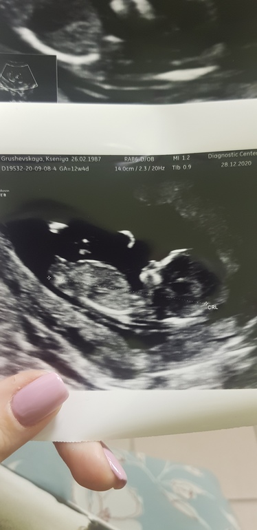 Результаты: УЗИ, КТГ, доплера, скринингаБыли сегодня с мужем на первом скрининговом узи.Ура!))) Все у кнопочки чудесно!КТР 6,4 смВоротниковое пространство 1,7Носик хорошо виден.Сердечко стучит 170 уд/минВесит 72 грамма! Ну прям такой упитанный человечек.Лежал(а) деловая нога на ногу 🤣👌По НИПТу мы уже знали, что нет хромоссомных болезней, поэтому только анатамия была важна. А анатомия отличная. Профиль прям красивый - в меня конечно 🤣🤗Записали видео, дали фото. Ну и конвертик дали (пол определён по результатам НИПТа, но мы не хотели сразу знать, 31 декабря будет сюрприз). Хотя вот по фото я конечно догадываюсь кого ждём))))