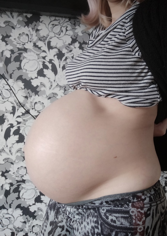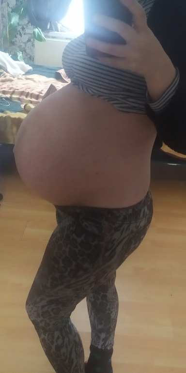 Живот огромный, начались очень болючие треники, ночами сложно спать… Живот болит почти постоянно. Начала снова чувствовать грудь… Шевеления болезненные, особенно когда в самом низу крутится… сводит, как будто шейку. Даже идти невозможно в такие моменты. Сынок всегда активный, выставляет ноги и попу… Крутит сильно головой и руками, как будто трогает лобковые кости.