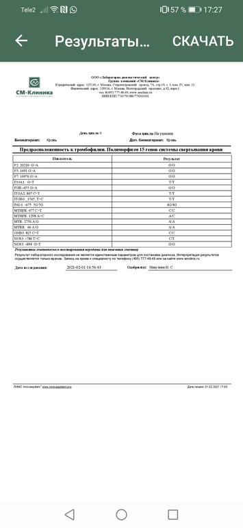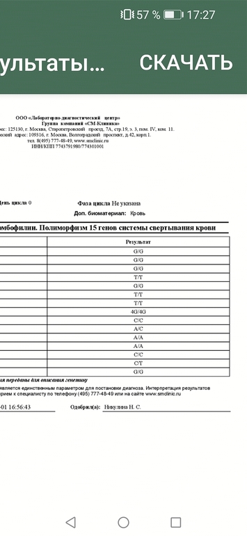 Анализы, инфекцииДевочки подскажите пожалуйста, пришли анализы на полиморфизмы 15 генов системы свертывания крови и протеин С, на АФС ещё не готовы. Протеин С референтные значения есть, вроде укладываюсь, а вот полиморфизмы ничего не понятно, одни только буквы-кто сдавал у вас расшифровка генетика была? Или это гематолог расшифровывает? Просто пока АФС не готово смысла нет на прием идти.
