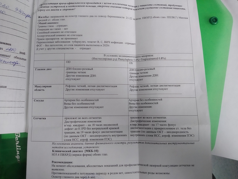 Девочки, направила меня офтальмолог к лазерному хирургу. Вчера съездила. Проверили через микроскоп, потом на томографе глазном посмотрели. В итоге пишет вот такое заключение и в книжке тоже. У кого так было, как все прошло?Маришка