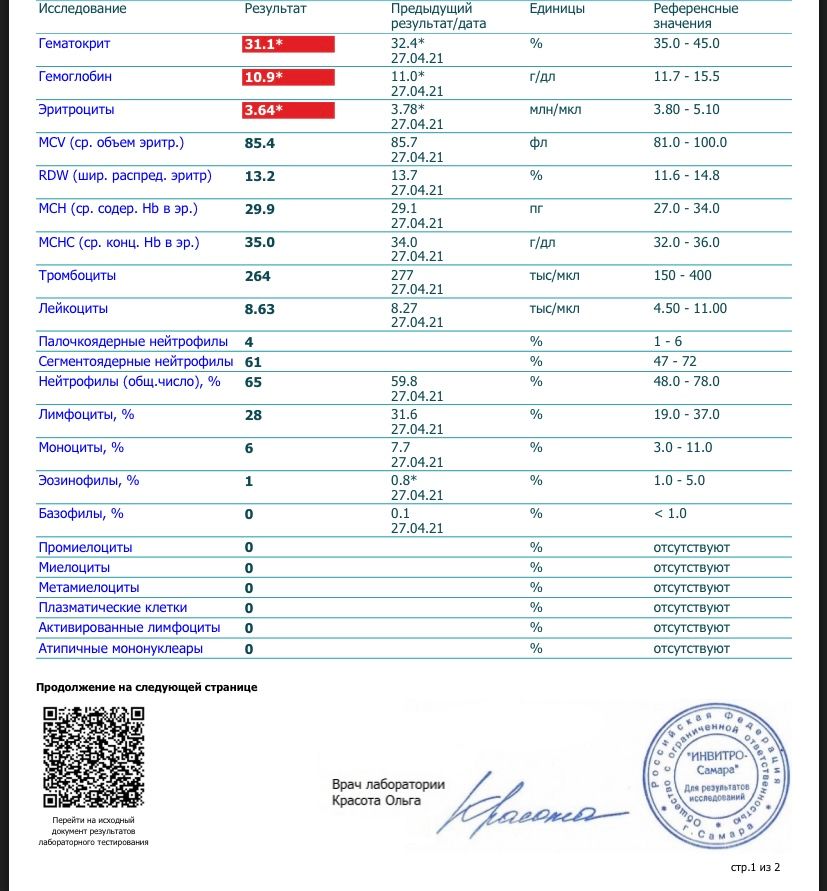 а, ну и гемоглобин, гематокрит говорят что железо надо попить, низкое, вот и все