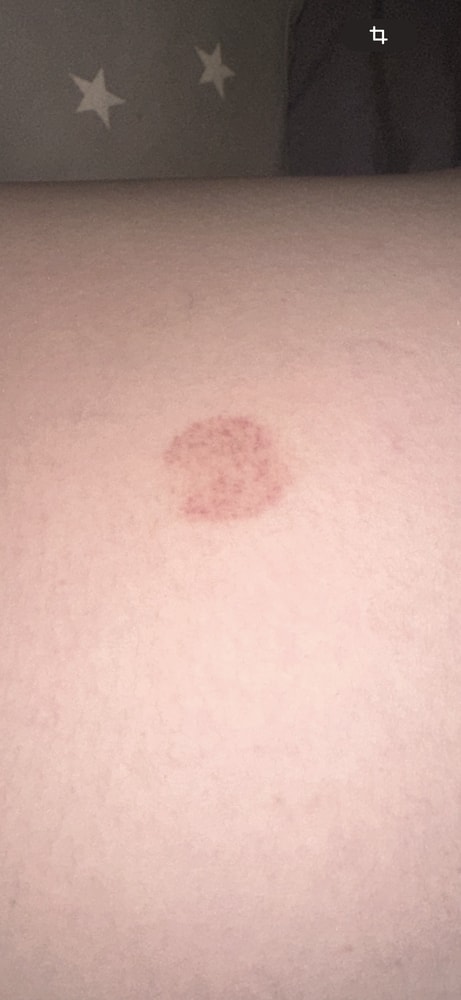 Если не чешется и не шелушится, скорее всего синяк, но лишай тоже иногда бывает по-разному. Пока можно просто наблюдать и не трогать, а к врачу показать, как только получится. Для тебя на 36 неделе обычно не опасно, но лучше перестраховаться.