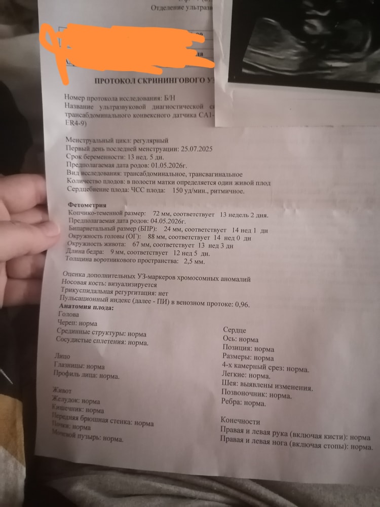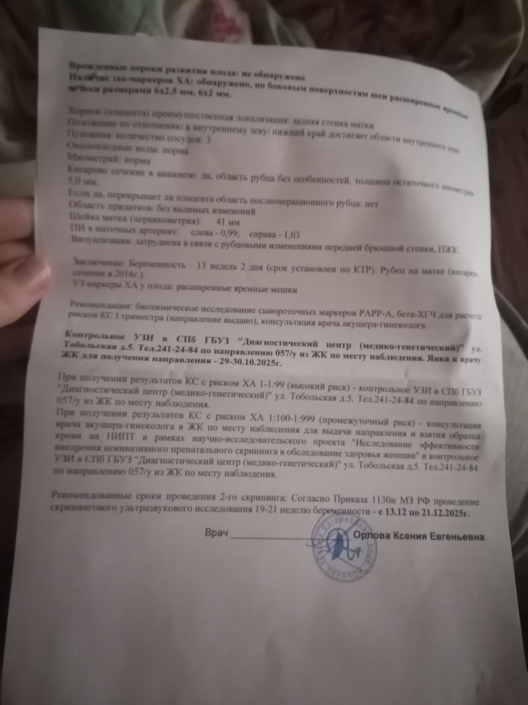 Результаты: УЗИ, КТГ, доплера, скринингаБыла сегодня на 1 скрининге
