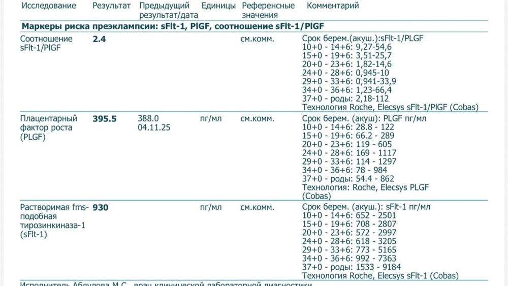 Но есть и хорошая новость из области анализов. Сдавала соотношение Plgf/sFlt (маркер рисков по преэклампсии). И результат обнадежил (тут чем меньше, тем лучше). Пока что все шансы, что мы с этой гадостью не встретимся.