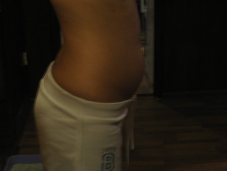А мне кажется не видно ничего )))Просто ты так встала, выгнулась слегка и расслабила живот. Я тоже в обычной жизни худенькая, но если так расслаблю - тож самое будет. Не торопись, еще находишься с пузиком!