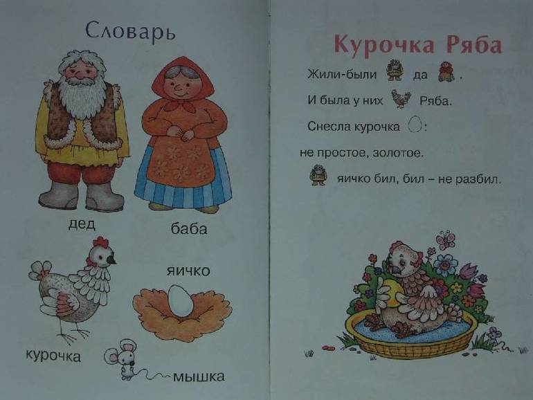 Отзыв: Вы тоже наверняка практикуете устный пересказ той же Репки с замалчиванием отдельных слов (их договаривает ребенок). Именно в таком ключе мы используем эту книгу с моей двухлеткой - я веду пальцем по строке и читаю текст, а слово к картинке вставляет доча сама . Конечно мы пока только курочку Рябу пробуем.