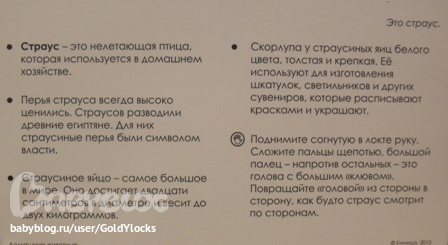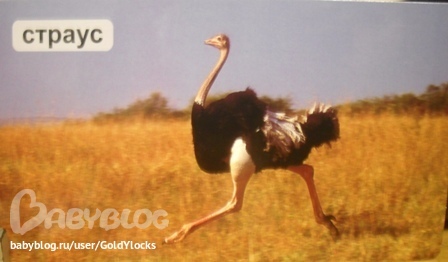 Вот как можно весело познакомиться с домашней птицей - страусом. Я обычно использую для информации карточки-фотографии из серии "Мир на Ладошке". В данном случае - это "".