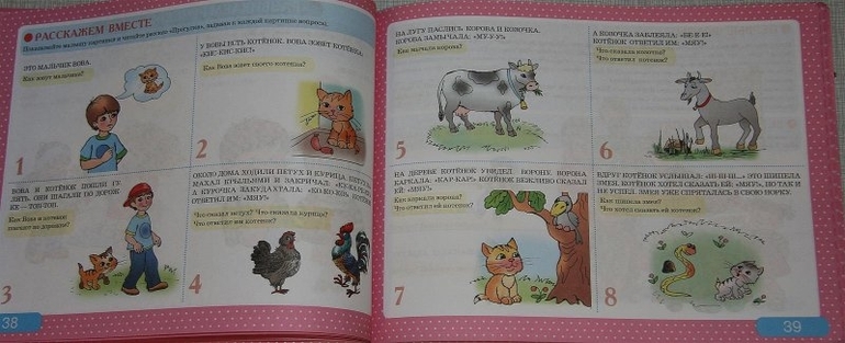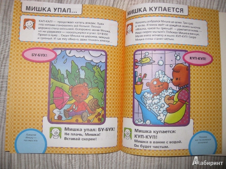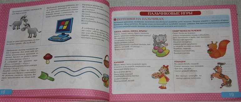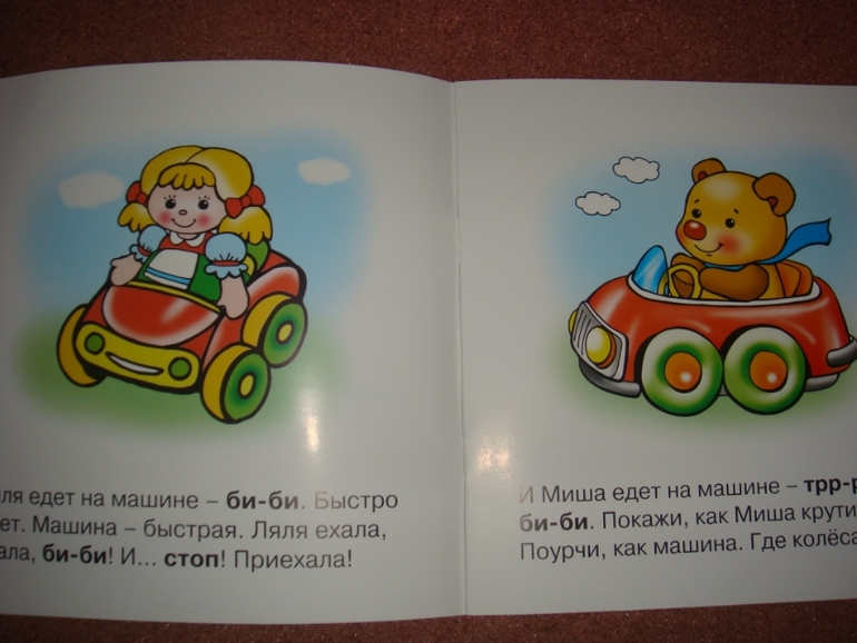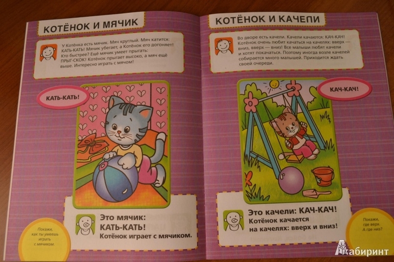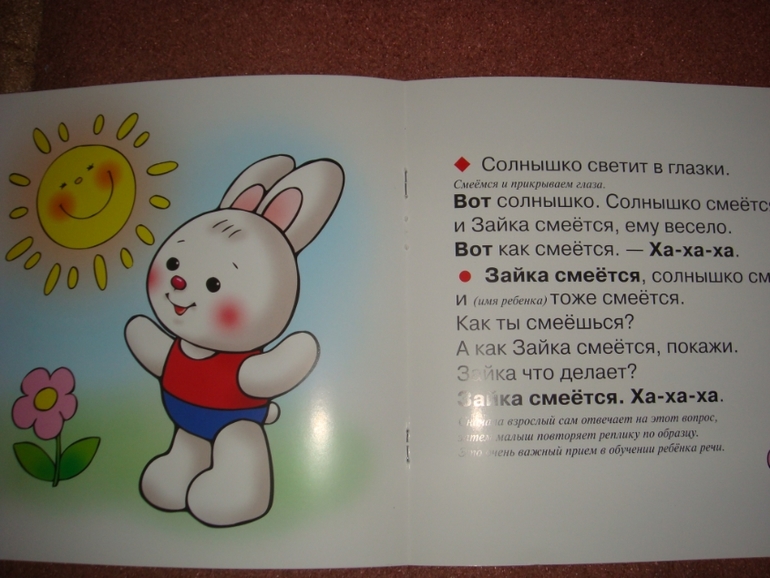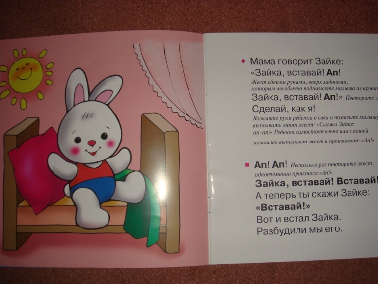 Обожаем эти книги. Здесь все просто. Картинка и текст для мамы. Ничего не надо выдумывать. Мы по этим книжкам научились говорить ; на, дай, ап, ка (кач), опа,за(зая)...ам, бах..ха-ха