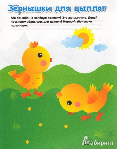 Помимо книг на звукоподражания в этой серии есть много книг для творчества, где предлагается например дорисовать лучики солнышку или приклеить зернышки цыпленку.