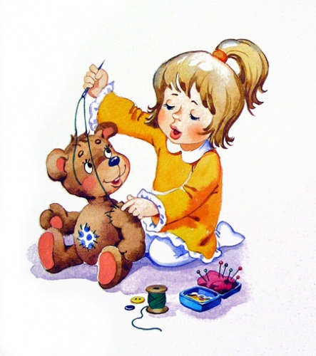 3. Особый интерес вызывает, когда я читаю и тут же показываю на картинке пальцем о чем читаю. Вот, например: "Уронили мишку на пол...". Показываю сначала на мишку, потом на пол. "Оторвали мишке лапу" - Опять же на мишку и на лапу... А еще эффективнее получается, когда разыгрывается маленькая сценка под текст. Как мишку роняют, как он держится за лапку, она у него болит, потому что оторвали, потом как его поднимают и обнимают ( "все равно его не бросим, потому что он хороший")
