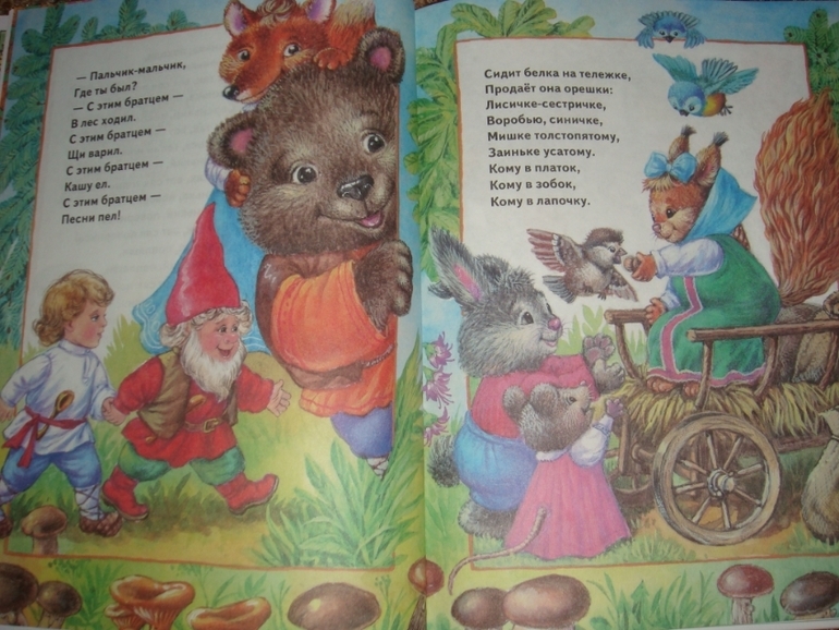 Это книга содержит просто очень милые малышовые иллюстрации. Помимо сказок содержит потешки, загадки, прибаутки. Очень пришлась моей Лизе по душе. ( Подробно писала ЗДЕСЬ)