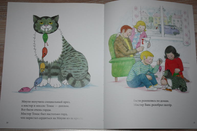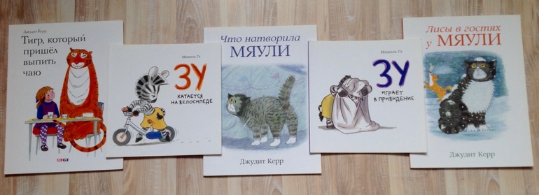 Еще одна английская писательница Джудит Керр написала и нарисовала сама прекрасные истории о кошке Мяули и Тигре, который пришел выпить чаю. О ней даже упоминалось недавно в фильме Позднера об Англии, который показывали в новогодние каникулы на первом канале. Оказывается, у нее более 30 книг, но нам доступны только про кошку и тигра. Особой морали не несут, по-английски загадочный тигр, соблюдающий чайную традицию, столкнувшийся с вежливой по-английски семьей, и обычная кошка, живущая сама по себе. Издания в мягком переплете, с плотными полукартонными листами. Как и все " Мелик-Пашаев"ские отпечатаны в Латвии, прекрасного качества.