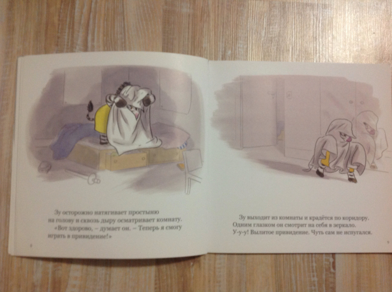 Вторая книга куплена на Хеллоуин. О том, как Зу решил попугать родителей, накинув простыню на голову. Испугав взрослых, и так подготовленных своим фильмом ужасов по телевизору, Зу случайно погасил свет и в темноте сам испугался следивших за ним, точнее за привидением , родителей, убежал в комнату и заплакал. А потом пошел спать с родителями, чтобы не было страшно.