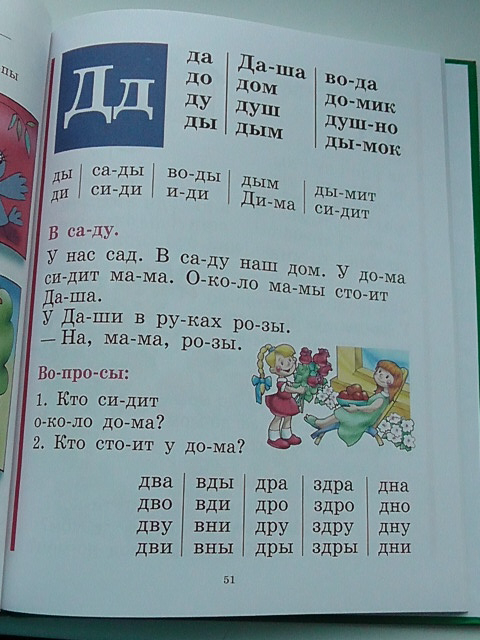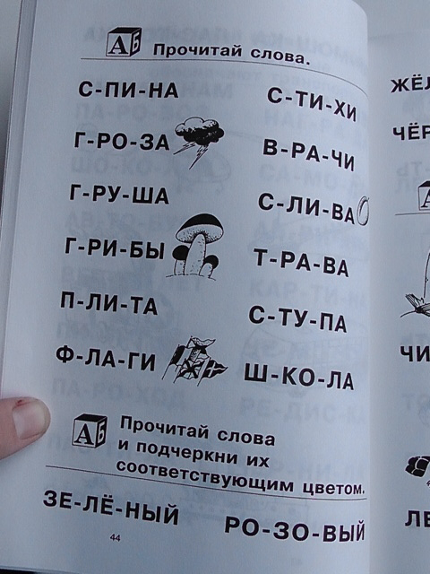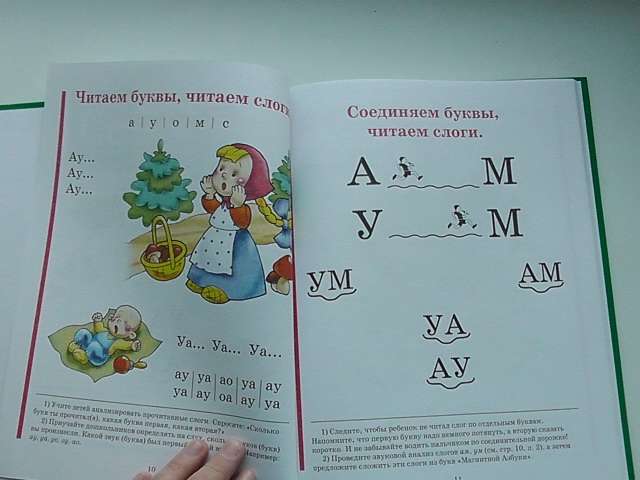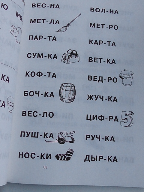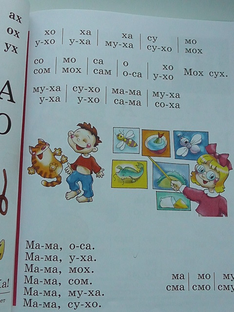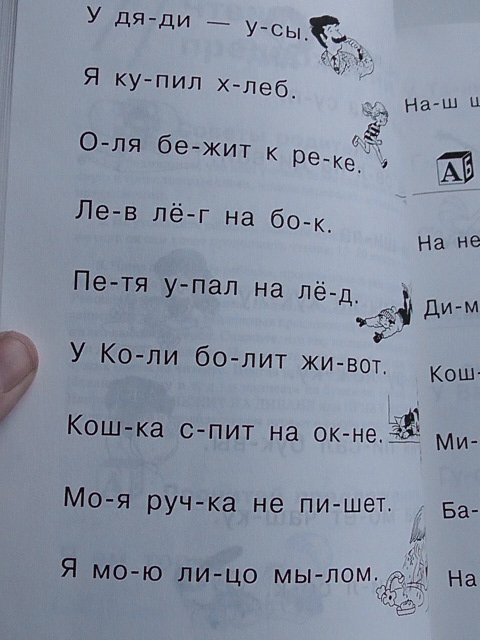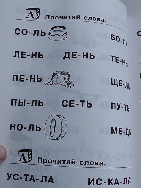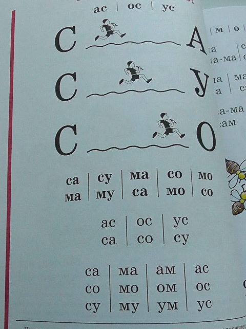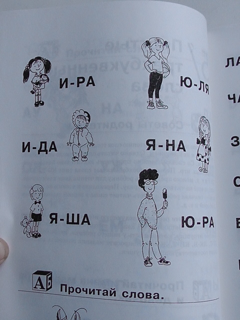 мне нравится учить по нему Настю. шрифт крупный. интервалы большие. расположение от слога к слову постепенное по мере чтения книги. .в 3.7 г Насте больше интересует информация о предмете. ее не заманишь методичным образованием звуков без прослеживающейся семантики слова. а вот имена. объявления-это подавай . да побольше.