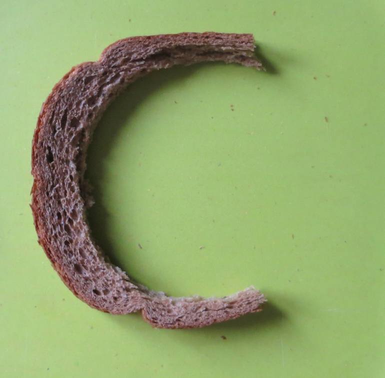 Катя быстро оценила идею и они вдвоем за пару минут, пока я готовила «космонавтам» бутерброды, извели целый пакет хлеба. Получилось 2 горки: лунный хлеб и обрезки.