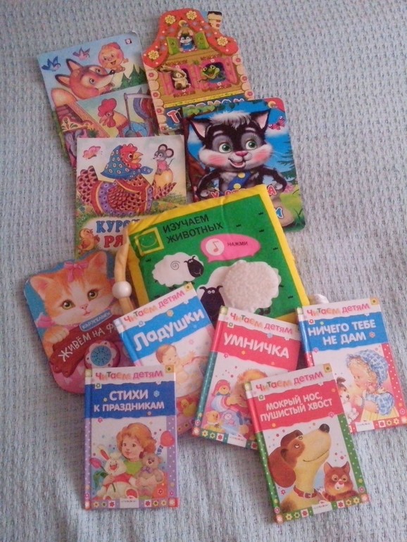 мягкие книжки со звуками животных я уже давно купила.раньше я сама нажимала кнопки и рассказывала про животное,теперь ребетёнок сам нажимает и под настроение ещё и повторит "мууу" или "куку"(это петух). а к моему чтению обычных детских книжек пока не особо то интерес проявляет!