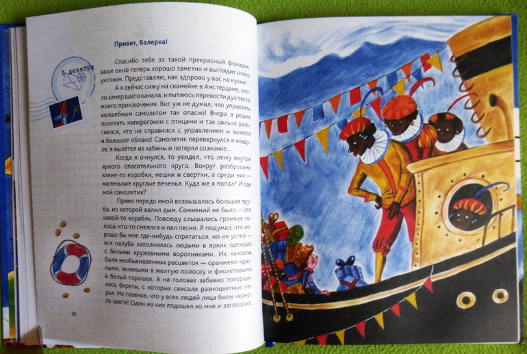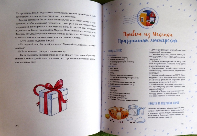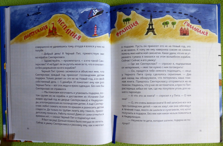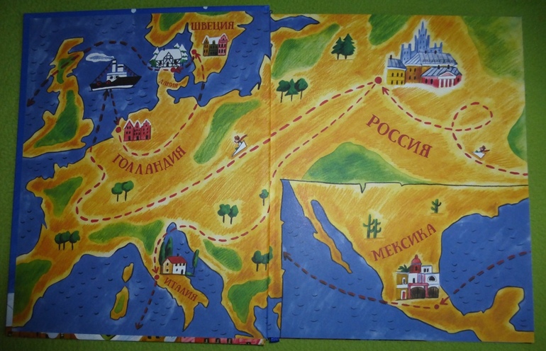 То есть Валерка знакомится с окружающим миром через сказку, придуманную мамой про маленького мальчика Вилли, который путешествует по странам «в поисках Деда Мороза» и узнает обычаи и традиции людей других стран, узнает, как дети готовятся к встрече праздника. Эта книга не просто сказка, а увлекательное путешествие по новогодним традициям людей разных стран, это традиции народов Голландии, Швеции, Дании, Италии, Мексики.
