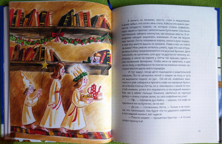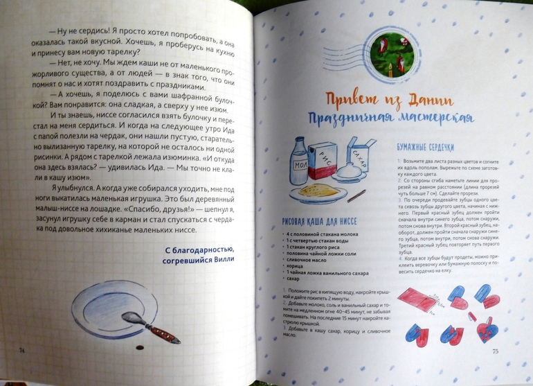 Текст в книге увлекательный, мы ее прочитали за два дня, но советую ее начинать с первого дня зимы по одной главе, чтобы растянуть удовольствие, чтобы обсудить с ребенком прочитанное и применить на практике чудесные творческие идеи из книги.