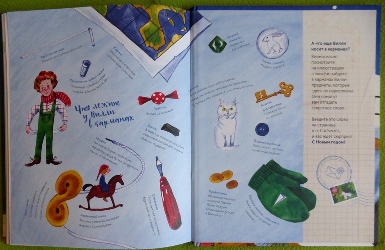 Очень интересный нахзац, где можно разглядеть, что лежит в карманах у Вилли и узнать, как получить сюрприз